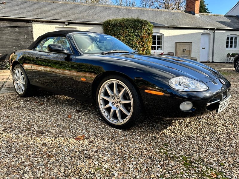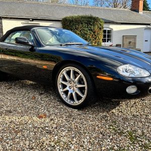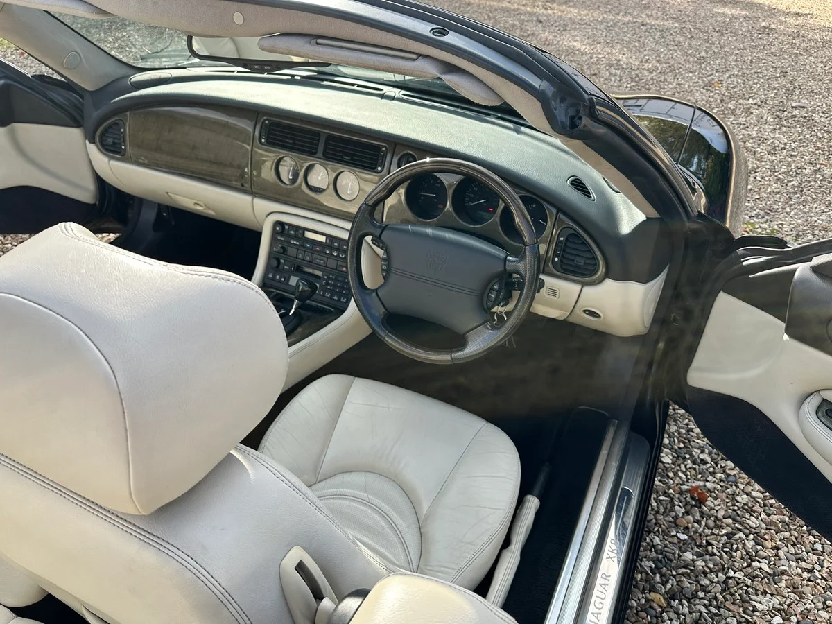 2003 Jaguar XK8 Convertible finished in Midnight Metallic Black with Ivory Sport leather interior and black mohair roof. Sitting on BBS split rims with good tyres all around. Full service history with the last service only completed a few months ago and an MOT until July 2026 with no advisories.